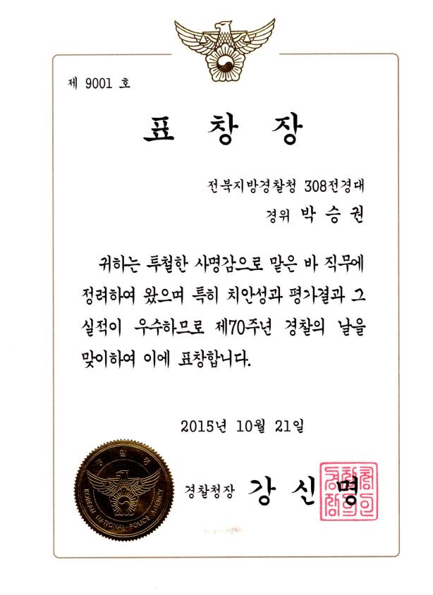 · 경찰청장 표창 (치안성과우수, 2015)