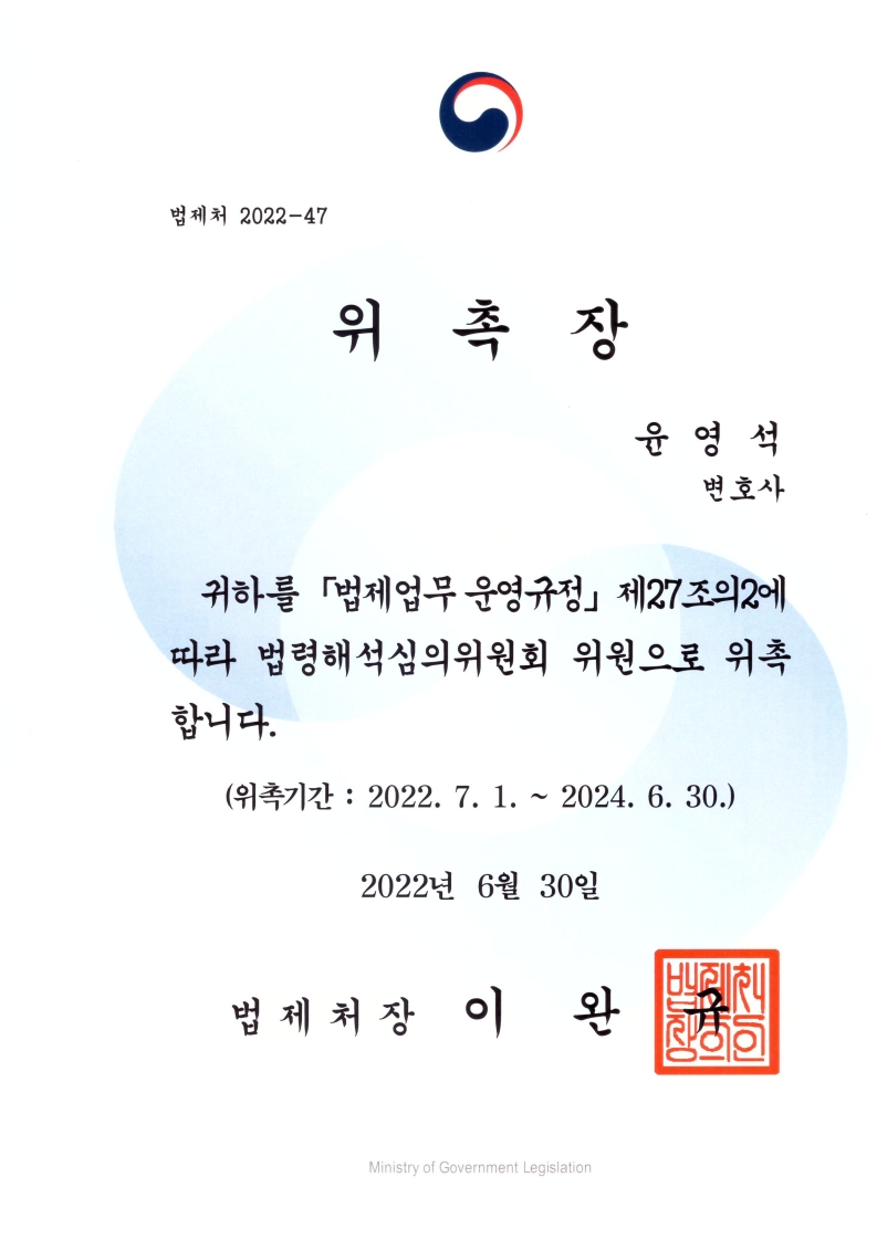 · 법제처 법령해석심의위원회 위원