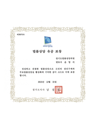 · 경기도지사 표창 (법률상담, 2015)