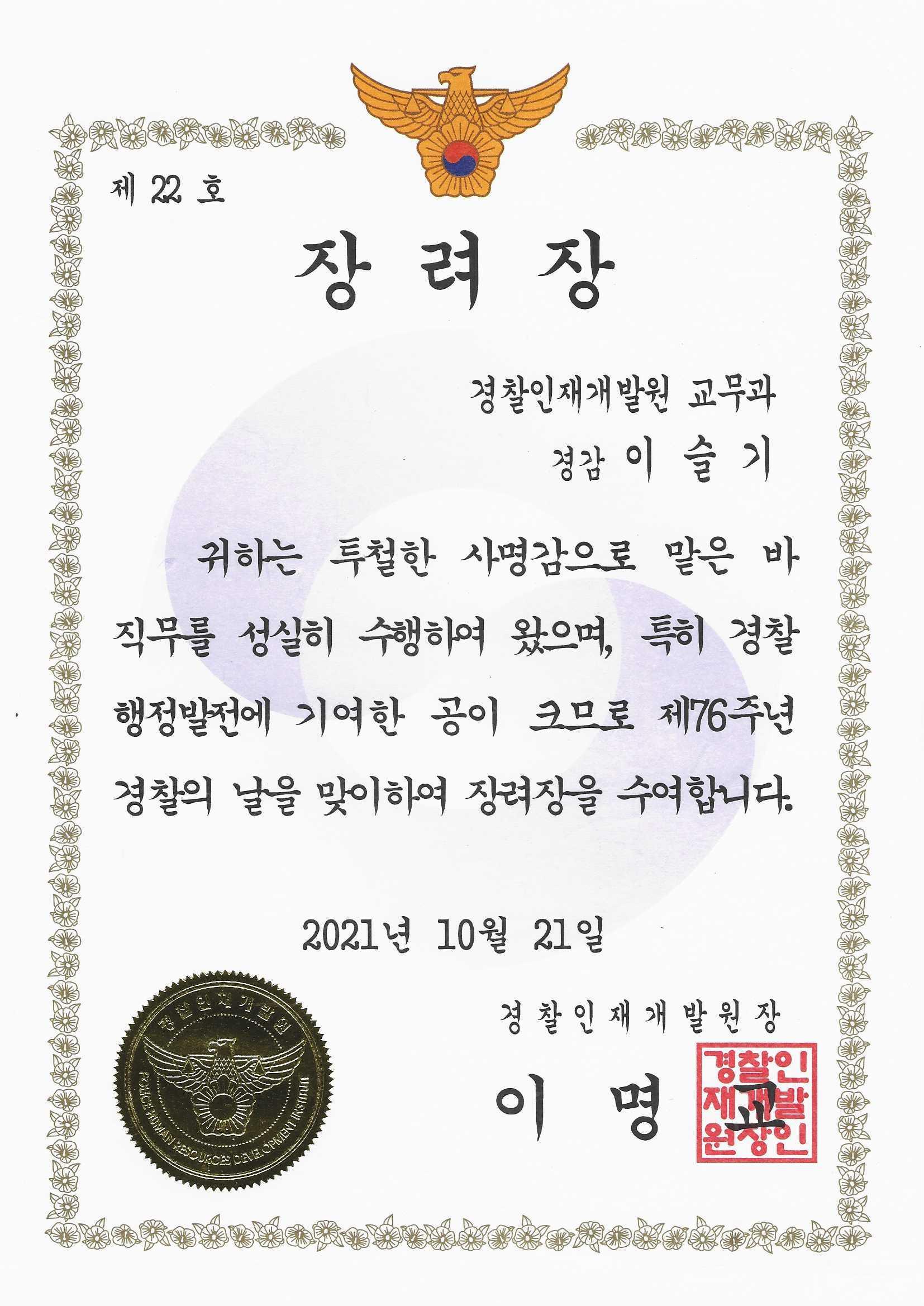 · 경찰인재개발원장 장려장 (행정발전, 2021)