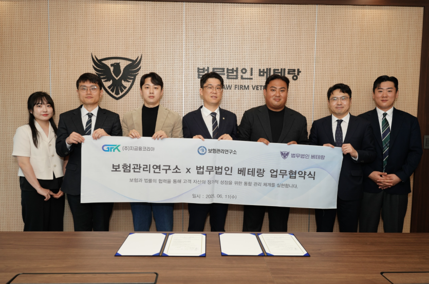 2025년 6월 11일, 법무법인 베테랑은 ㈜지금융 보험관리연구소와 함께 법률 및 보험·금융 자문 협업을 위한 업무협약(MOU) 을 체결하였습니다.