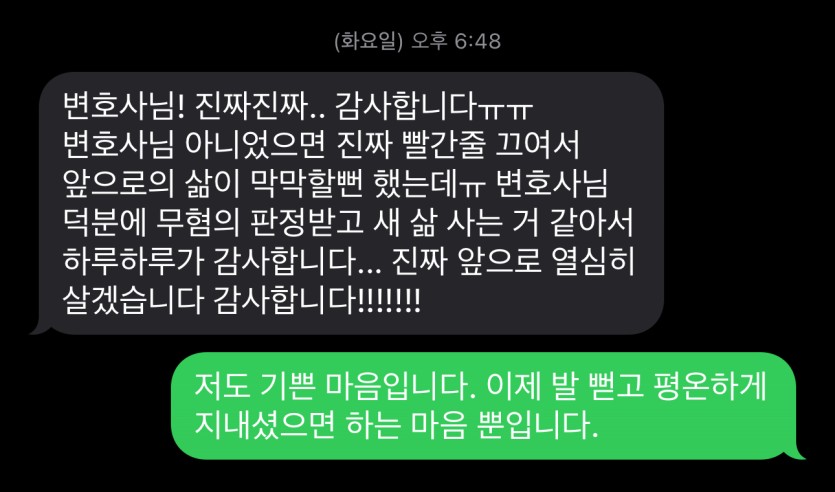 변호사님 덕분에 무혐의 판정받고 새 삶 사는 거 같아서
